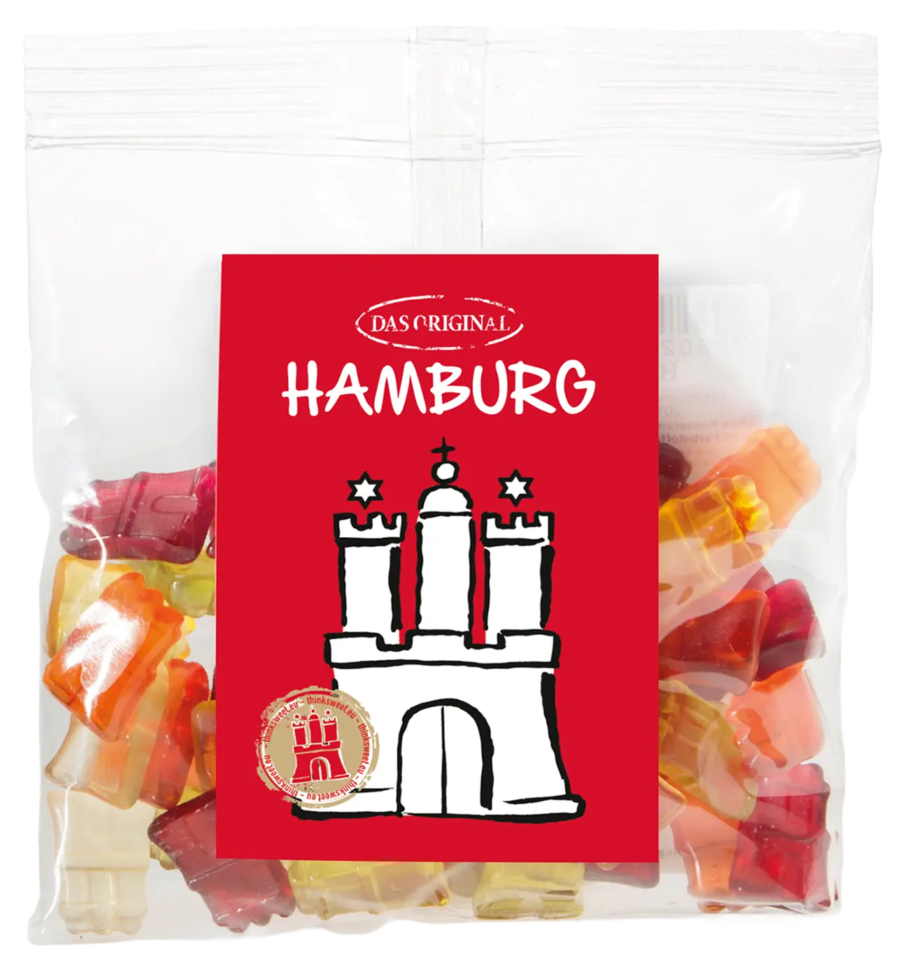 Das süßeste Stück Hamburg, das du jemals probieren wirst – Fruchtgummi mit Herz und Wappen direkt aus der Tüte.